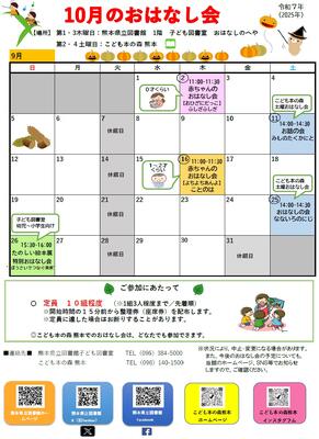 チラシをクリック、または詳しくはリンク:R7(2025)年度おはなし会チラシ10月.pdfから、チラシのPDFファイルをご覧いただけます。