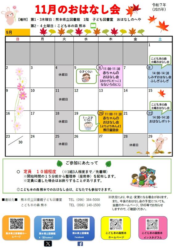 おはなし会のようすは、エックス(まえのツイッター)、 フェイスブックでもおしらせします。